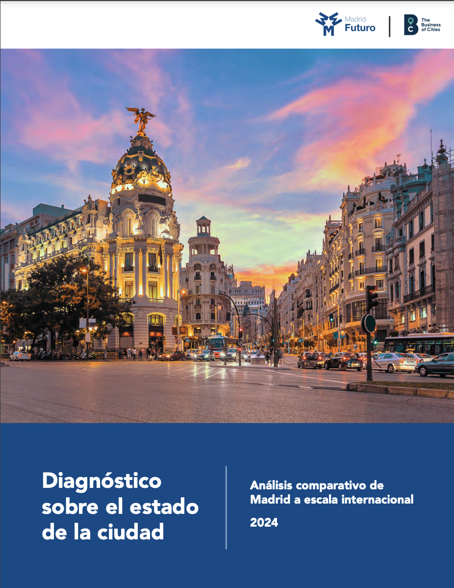 It presents an analysis of Madrid's global position in terms of competitiveness and urban development.